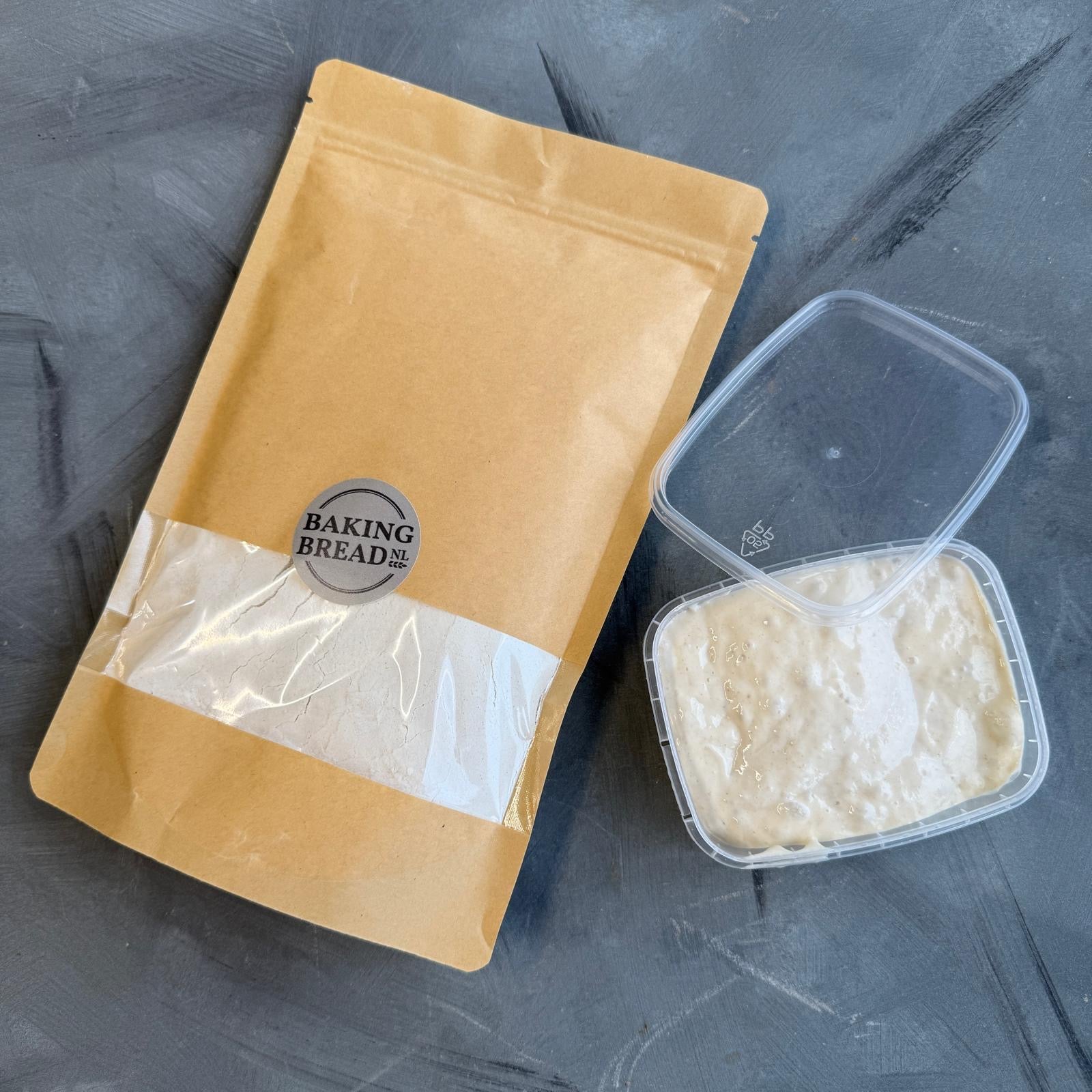 Wil je zelf heerlijk, ambachtelijk desembrood bakken? Met onze verse desemstarter en 400 gram steengemalen molenbloem heb je alles in huis om direct aan de slag te gaan.
